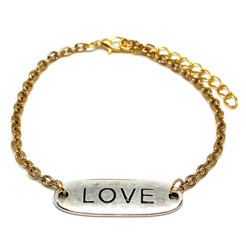 1 kép Love felirat bilétás rozsdamentes acél karkötő, arany színű
