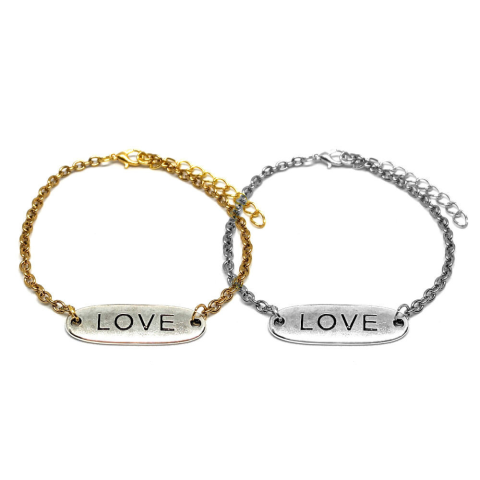 1 kép Love felirat bilétás rozsdamentes acél páros karkötő, ezüst-arany színű