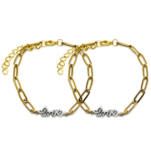 1 kép Love felirat charmos rozsdamentes acél páros hosszú szemes karkötő, arany színű