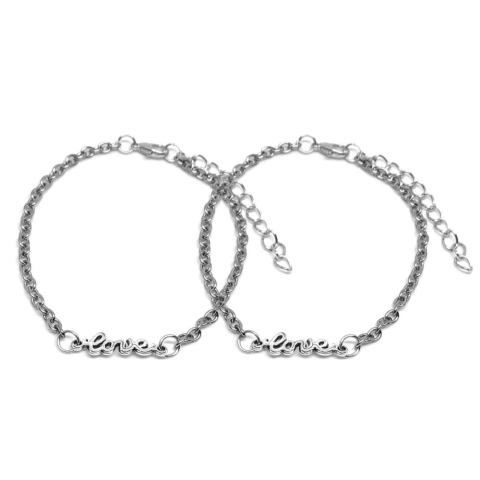 1 kép Love felirat charmos rozsdamentes acél páros karkötő, ezüst színű