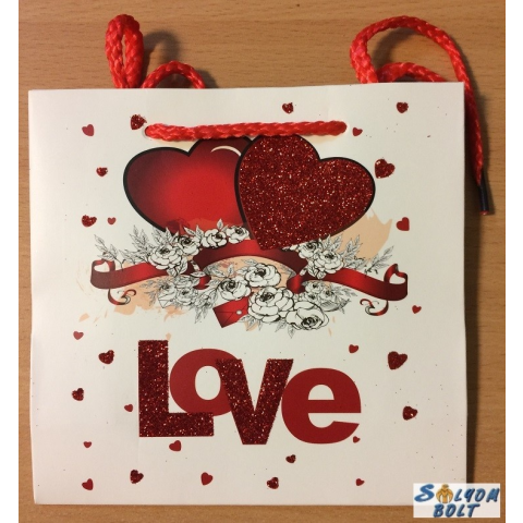 Love, piros szíves dísztasak Papír tasak zsinór füllel Mérete: 15 x 14 cm
