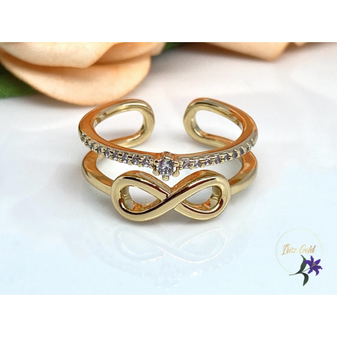 1 kép Lucia antiallergén nyitott gyűrű állíthatüó méretű apróköves, végtelen jellel 18K