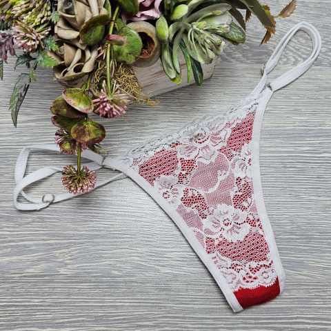 1 kép Lucifer állítható pántos piros-fehér csipke TANGA