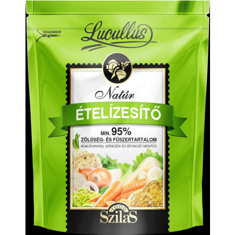 Min. 95% zöldség- és fűszertartalom, Adalékanyag, színezék és ízfokozó mentes, Ízfokozó mentes, Tartósítószer mentes, Hozzáadott színezék, aromák nélkül, Adalékanyagok nélkül, Tengeri sóval 10 db/karton Termékleírás Jellemzők Min. 95% zöldség- és fűs