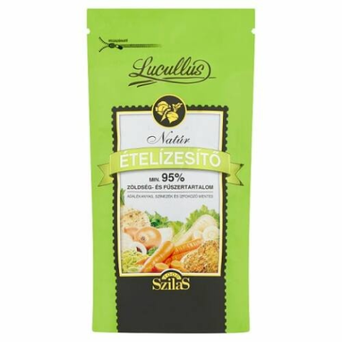 Min. 95% zöldség- és fűszertartalom, Adalékanyag, színezék és ízfokozó mentes, Ízfokozó mentes, Tartósítószer mentes, Hozzáadott színezék, aromák nélkül, Adalékanyagok nélkül, tengeri sóval.