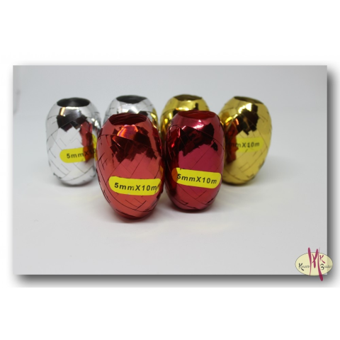 Méret: 5mm x 10 m Alkalmas lufi megkötésére, csomagolás díszítésére, dekorációhoz. Színválaszték: Arany Ezüst Piros