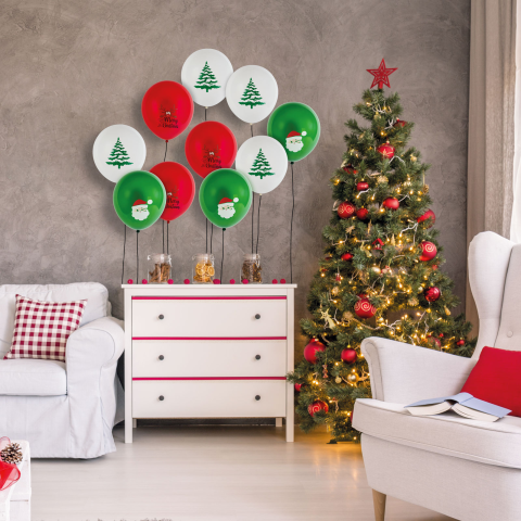 Egyetlen karácsonyi dekorációból sem maradhatnak ki a lufik! Színesítse az ünnepi dekorációt ezzel a vidám karácsonyi lufi szettel! A csomag 10 darab, piros, fehér és zöld színű léggömböt tartalmaz, különböző karácsonyi mintákkal – például Mikulás, karácsonyfa, rénszarvas és ""Merry Christmas"" felirattal. A s