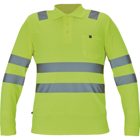 LUGO HV póló hosszú ujjú sárga XXL • Hi-Vis hosszú ujjú póló 5 cm széles fényvisszavető csíkokkal • 3 gombbal záródó nyakkivágás • rugalmas mandzsetta • 1 mellzseb