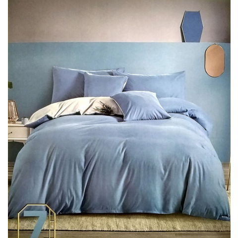 4 kép LUNA 7 részes egyszínű ágynemű garnitúra - középkék