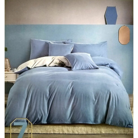 2 kép LUNA 7 részes egyszínű ágynemű garnitúra - középkék