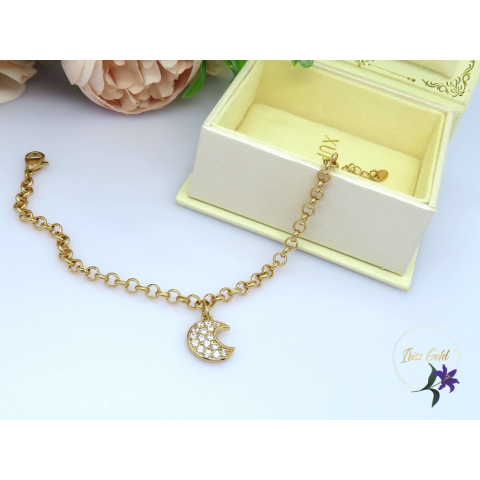 1 kép Luna antiallergén bőrbarát karlánc félhold csüngővel-18K