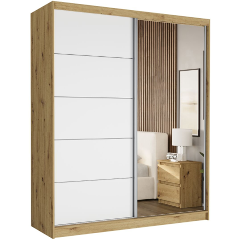 LUNA I. Tolóajtós Gardróbszekrény Tükörrel - Artisan Tölgy és Fehér 🚪✨ A LUNA I. tolóajtós gardróbszekrény ideális választás hálószobájába, előszobájába vagy öltözőjébe. Modern design, helytakarékos tolóajtók és egy nagyméretű tükör kombinációja tes...
