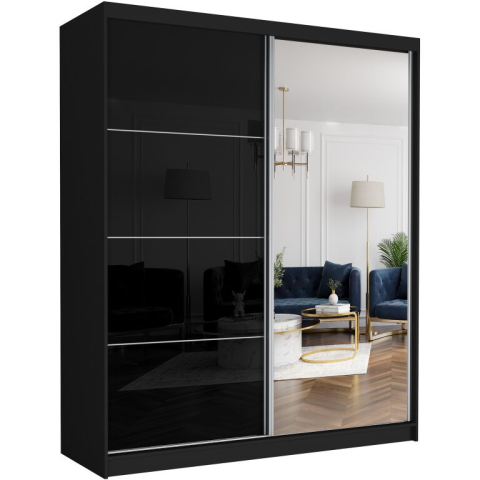 1 kép LUNA IV. Gardróbszekrény, fekete üveggel, tükörrel 183x218x60 - fekete
