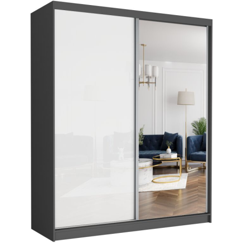 LUNA VI. Gardróbszekrény fehér üveggel, tükörrel 183x218x60 - antracit bútor termékleírás