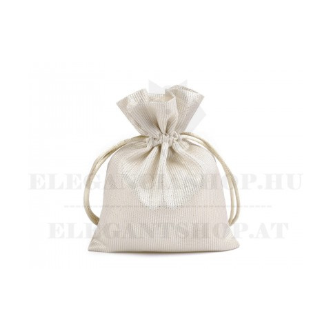 A lurexszel á,tszőtt, csillogó, szaté,nbó,l ké,szü,lt ajá,ndé,ktá,ska ,minden megajá,ndé,kozottnak ö,rö,met okoz. Kis ajá,ndé,kok becsomagolá,sá,ra szolgá,l, amelyek az anyag á,tlá,tszatlansá,gá,nak kö,szö,nhetően meglepeté,sek maradnak. A tá,ska kö,nnyen zá,rható, szaté,n zsinó,rral. Szé,lessé,ge: ,10