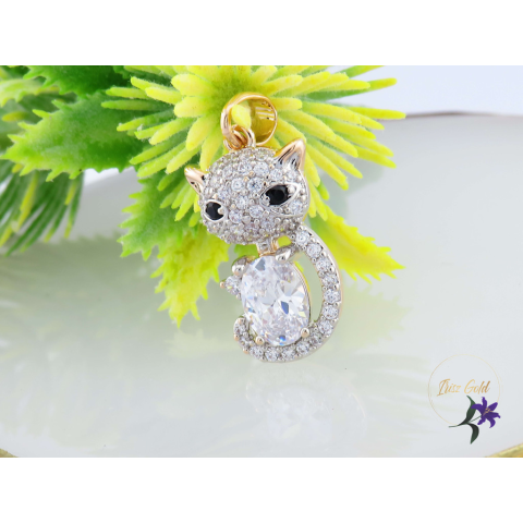 Goldfilled gazdagon díszített cica medál középen fehér cirkóna kővel Szin :18K Medál: 25x10mm