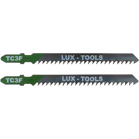 A nagy széntartalmú acélból (HCS) készült, T-szárral rendelkező LUX dekopírfűrészlap ideális 10-60 mm vastagságú fában végzett durva vágásokhoz. A dekopírfűrészlap teljes hossza 100 mm, fogazott hossza 75 mm, a fogosztás 3 mm. Ingalökethez nem alkalmas. A csomag két dekopírfűrészlapot tartalmaz.