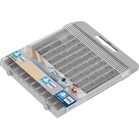 A LUX-TOOLS dekopírfűrészlap-készlettel minden projekthez optimálisan felszereltséget biztosít. A készlet 10 darab dekopírfűrészlapot tartalmaz, amelyek fához, műanyaghoz és fémhez használhatók: A három, nagy széntartalmú acélból (HCS) készült dekopírfűrészlap 10-60 mm közötti vastagságú fában végzett durva vágásokhoz alkalmas (ingalökethez nem). Munkahosszuk 75 mm, fogosztásuk pedig 3 mm. A két, nagy széntartalmú acélból (HCS) készült dekopírfűrész