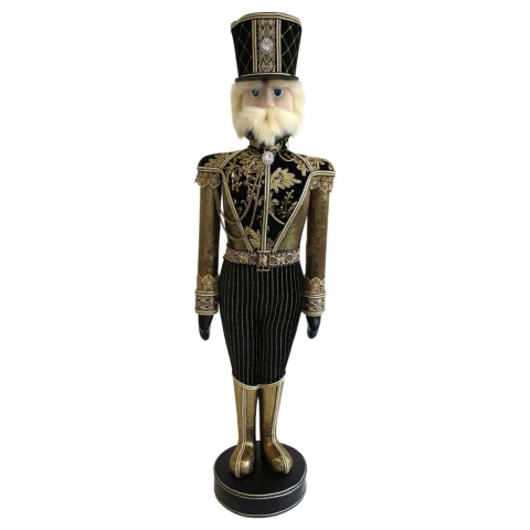 Elegáns, fekete-arany Diótörő figura - 105 cm - Ünnepi dekoráció 🎄 Ez a luxus kivitelű, 105 cm magas diótörő tökéletes választás, hogy ünnepi hangulatot varázsoljon otthonába vagy üzletébe. Különleges megjelenésével kiemelkedő dekorációs elem lehet n...