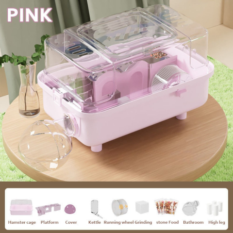 1 kép Luxus panoráma hörcsög ketrec hordozó funkcióval 45x28x28cm - Rózsaszín