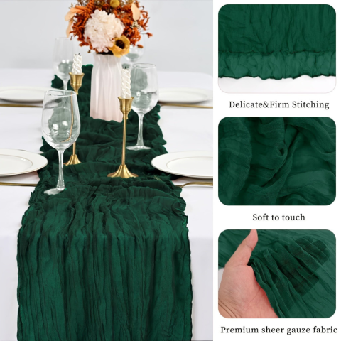 Fedezd fel a luxus és elegancia új dimenzióját a smaragdzöld sajtkendő asztalfutóval! Ez a lenyűgöző asztalfutó a kifinomultság és a stílus megtestesítője, amely bármely étkezőt azonnal átalakít. A smaragdzöld árnyalat vibráló és frissítő, tökéletesen ill