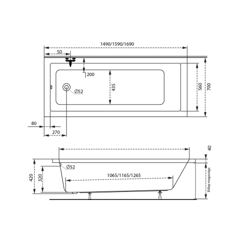 M-Acryl Sandra egyenes akril kád 170x75 kád, zuhanykabin árgrafikon