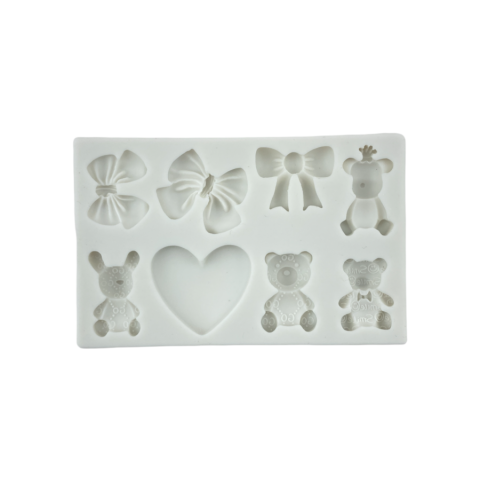 Maci és masni fondant forma, szilikon, 12×7,5 cm Szilikonforma mérete: 12×7,5 cm. A termék színe eltérő lehet. Tisztítása mosogatószeres vízben. Származási hely: Kína