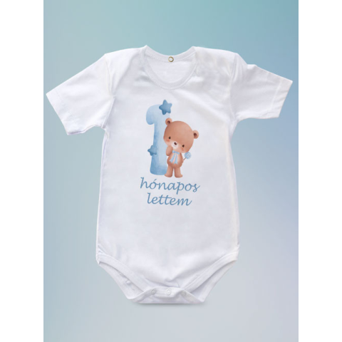 Baba ajándék, macis body kisfiúknak, 1 hónapos lettem body. Különleges pillanat, amikor a kisbaba betölti az első hónapot – ez a „1 hónapos lettem” feliratos ajándék tökéletes választás ehhez a mérföldkőhöz. A cuki medvés minta garantáltan mosolyt csal mi