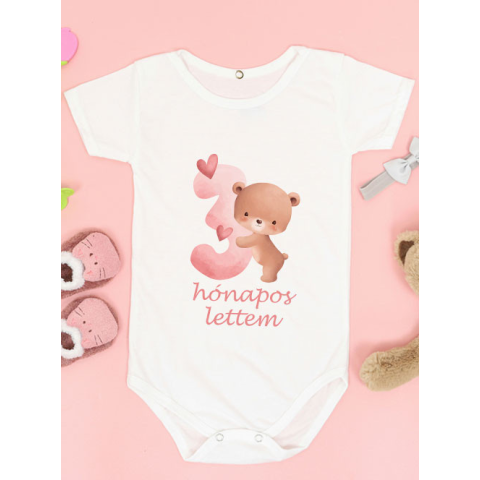 Baba ajándék, macis body kislánynak, 3 hónapos lettem body. A 3. hónap is egy mérföldkő – ünnepeld meg ezzel a különleges, feliratos ajándékkal! A szeretnivaló maci és a rózsaszín árnyalat tökéletes harmóniát alkotnak. Ez a body nemcsak stílusos, hanem pr