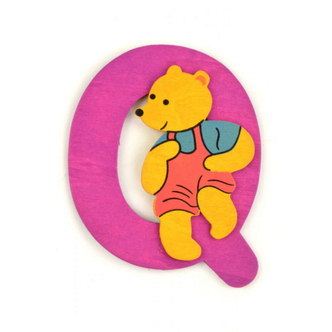 Fa betű Q - Maci mintával - 8 cm Vidám, színes fa betű, macis figurával díszítve! Tökéletes választás a kicsik szobájába, vagy akár fejlesztő játéknak is. Jellemzők: Méret: 8 cm Anyag: Fa Szín: Lila betű, színes maci Motiváció: Maci Betű: Q Mitől kü...