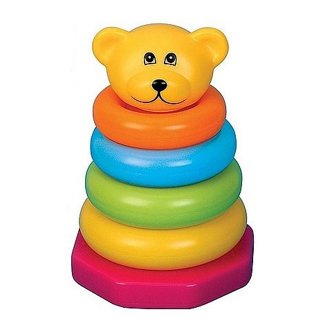 Macis gyűrű piramis bébijáték Két bébijáték egyben, ami fejleszti a baba mozgását, érzékelését! A Macis gyűrű piramis bébijáték egy műanyagból készült torony, amin színes karikák vannak, és egy mackó fej van a tetején A Macis gyűrű piramis alja legöm