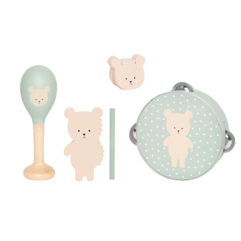 Engedd, hogy a kicsik felfedezzék a zene varázsát ezzel az imádnivaló hangszer készlettel! Ez a csomag mindent tartalmaz, ami a kis dallamok és ritmusok megalkotásához szükséges. Az összes hangszer lágy, természetes színnel és egy bájos maci arccal lett d