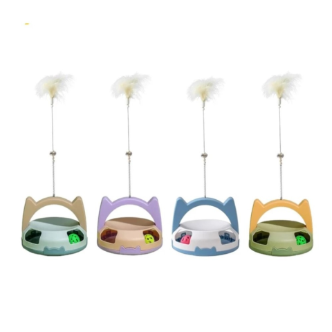 🐱🌀🎮A macska görgős tálca játék egy kiváló szórakozást nyújtó eszköz a macskádnak, amely tartalmaz 2 csörgő labdát és egy tollas pálcát is.🎮🌀🐱