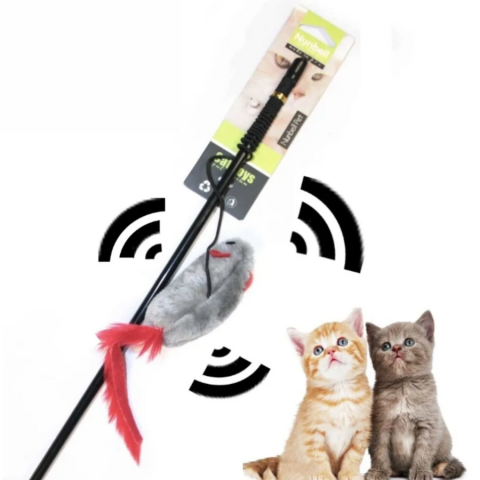 1 kép Macska Játékpálca – Interaktív Egérhanggal és Tollas Kiegészítőkkel