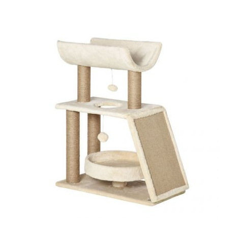 Tedd cicád mindennapjait kényelmesebbé és szórakoztatóbbá ezzel a 2 szintes bézs macskamászókával! A puha plüss borítás pihenésre csábít, míg a tartós kaparófa és a bojtos játékok természetes ösztöneit elégítik ki. Kompakt, stabil kialakítása és natúr színe bármely otthonban tökéletesen mutat, miközben cicádnak örömet és kényelmet nyújt. Kényelem és szórakozás egy helyen A macskamászóka két szinttel rendelkezik, így cicádnak több lehetőséget