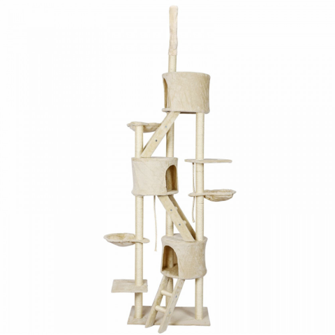Ezzel a bézs színű macskabútorral változatos a macska mindennapjai. Mert ez a 233-270 cm magas kaparóoszlop nagyon sokat kínál a macskának. Ez magában foglalja a több alvási helyet, a különböző pihenőhelyeket, a különböző játéktevékenységeket és egyben a