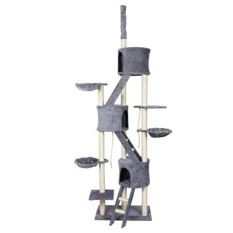 Macskajátszótorony - Mennyezeti Kaparóoszlop - Világosszürke - 233-270 cm Ez a többfunkciós macskajátszótorony tökéletes választás a cicád számára! Kényelmes pihenőhelyeket, izgalmas játéklehetőségeket és karomköszörülési lehetőséget kínál egyben. A...