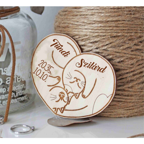 Ez a bájos macskás hűtőmágnes fa alapból készül, lézervágott részletekkel, így melegséget és természetességet hoz minden otthonba. Ideális köszönetajándék esküvőre, hiszen praktikus kis tárgy, amit a vendégek otthon is szívesen használnak. A felülete grav