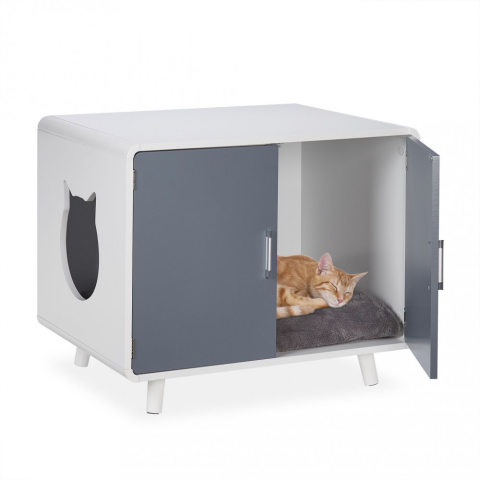Macskatoalett ajtókkal fehér-szürke 59x71,5x56 cm 10035394
