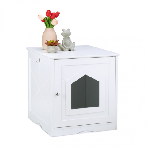 Házi macskájának is szüksége van a magánéletére. Használja a macskaszekrényt almos doboznak búvóhelyeként, vagy kínáljon neki menedéket. A cica önállóan be- és kijárhat a bejárati ajtó formájú nyíláson keresztül. A macskabútor kis asztalként is használhat