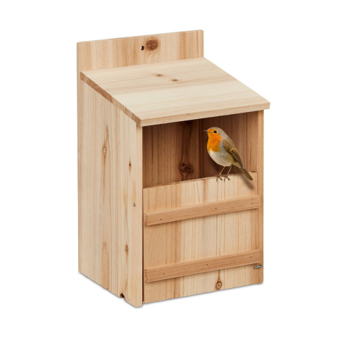 Madár fészkelő doboz natúr 36x22x21 cm Ezzel a fészkelőházzal védett helyet kínál tollas barátainknak fiókáik felnevelésére. A félmagas bejárati rés alkalmas félüreges fészkelők számára. A fúrólyuk segítségével könnyedén rögzítheti a madárházat a kertben