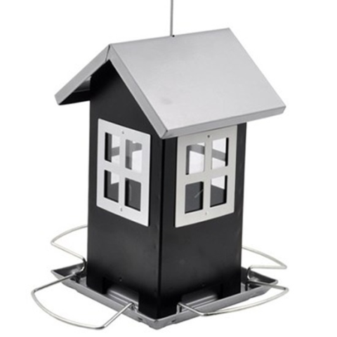 Egyedi kialakítású, utántöltős, kerti, fém madáretető házikó. Esővédett, így mindig száraz magokat tudunk felkínálni a madaraknak.