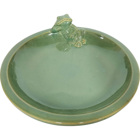 A békával ellátott madáritató ivó- és fürdési lehetőséget kínál a madaraknak. Ezenkívül gyönyörű látványt nyújt az erkélyen, a teraszon és a kertben. Az itató zöld színű kivitelével inspirál, valamint egy békával díszítették. Az agyagból történő gyártásnak köszönhetően a madáritató stabil tulajdonságokkal győz meg. Mérete (M x Sz x Mé) 9,5 cm x 27,5 cm x 29 cm.