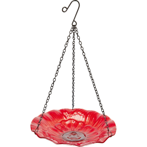 A piros színű, 23 cm átmérőjű, függő, üveg virágos madáritató azonnal felhívja magára a figyelmet minden kertben. Élénk piros színével és egyedülálló virágmintájával nemcsak a madarakat vonzza, hanem a csodáló pillantásokat is. 38 cm x 23 cm x 23 cm méretével elegendő helyet kínál tollas barátainak, hogy felfrissüljenek és igyanak. Nyári fénypont A madáritató különösen a meleg évszakban elengedhetetlen fontosságú. Üdvözlő felfrissülést kínál a