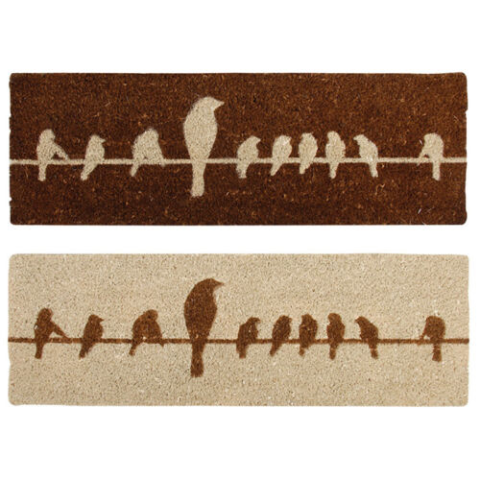 A kókuszdió héjából készült, madár mintákkal ellátott világosbarna lábtörlő modern eleganciát ad otthonunk bejáratának. Belső és külső használatra egyaránt alkalmas, választhatjuk világos vagy sötét színben is. Alsó részének anyaga PVC, amely kiváló csúsz