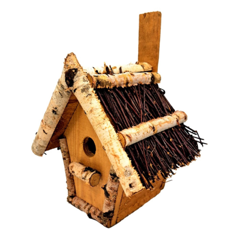 Fából készült madáretető. Klasszikus dizájn, akasztható kivitelben. Segítség a madaraknak a hideg hónapokban.