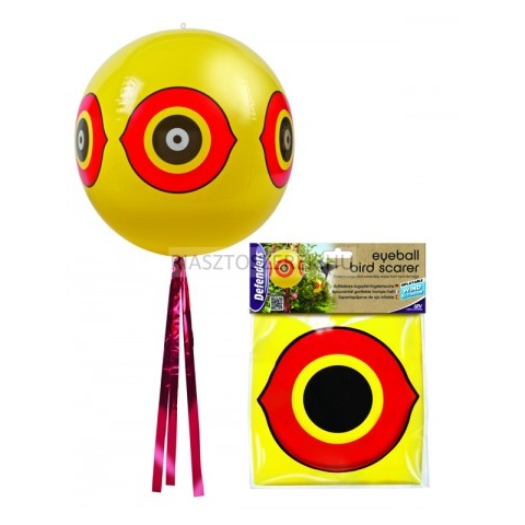 The Big Cheese felfújható madárriasztó szem A felfújható léggömb a madarak nyugalmának megzavarására-riasztására használható. A függeszthető léggömbön a szél hatására bemozdul és a rajta található speciális szemek és szín kombinációk zavarják a betolakodó
