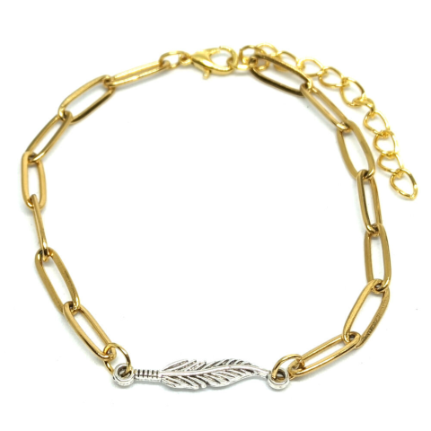 1 kép Madártoll charmos rozsdamentes acél hosszú szemes karkötő, arany színű
