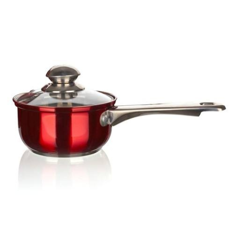 MAESTRO Red rozsdamentes acél nyeles lábas üvegfedővel 1,5 l, méretek - átmérő 16 cm, magasság 8 cm, anyag - rozsdamentes acél 201, (test 0,50 mm, talp - rozsdamentes acél, alumínium, indukció védelem), külső és belső felület felületkezelése - fényes, belső oldalon űrmérték skála. Rozsdamentes acél fülek és fogantyú. A nyeles lábas minden főzőlap típuson használható.
