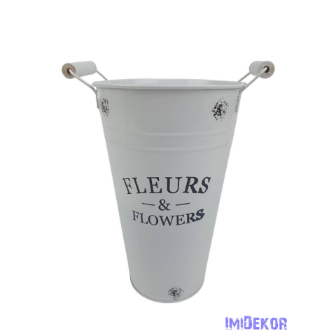 Magas bádog virágtartó 25cm - Fehér dekorációs kellék 1 kép